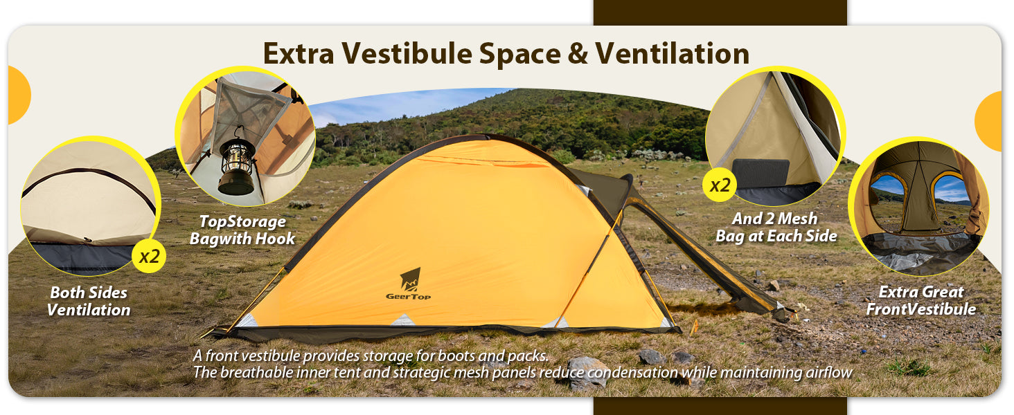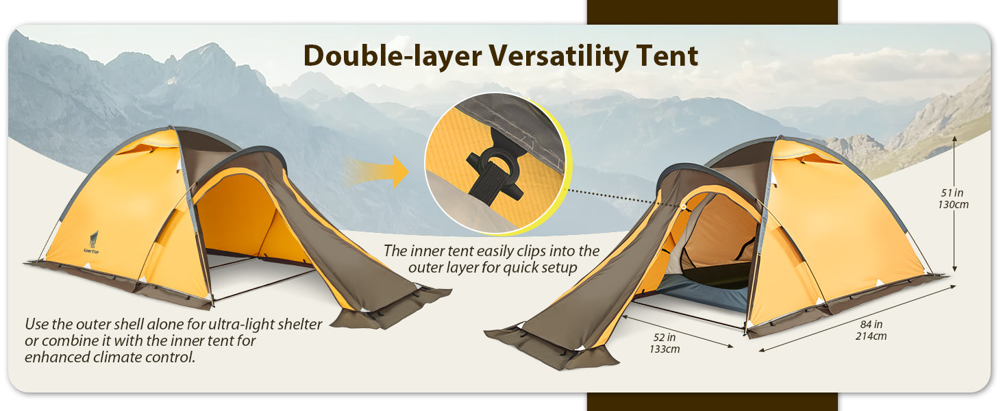 GeerTop Navigator Mountaineering Tent trusted by the Belgian professional climbing team "Lad from the green land" during their successful Mount Everest ascent, this lightweight 2-person waterproof tent is built for extreme weather. Its all-season design and quick setup deliver proven reliability for high-altitude expeditions and the world’s most severe conditions.​