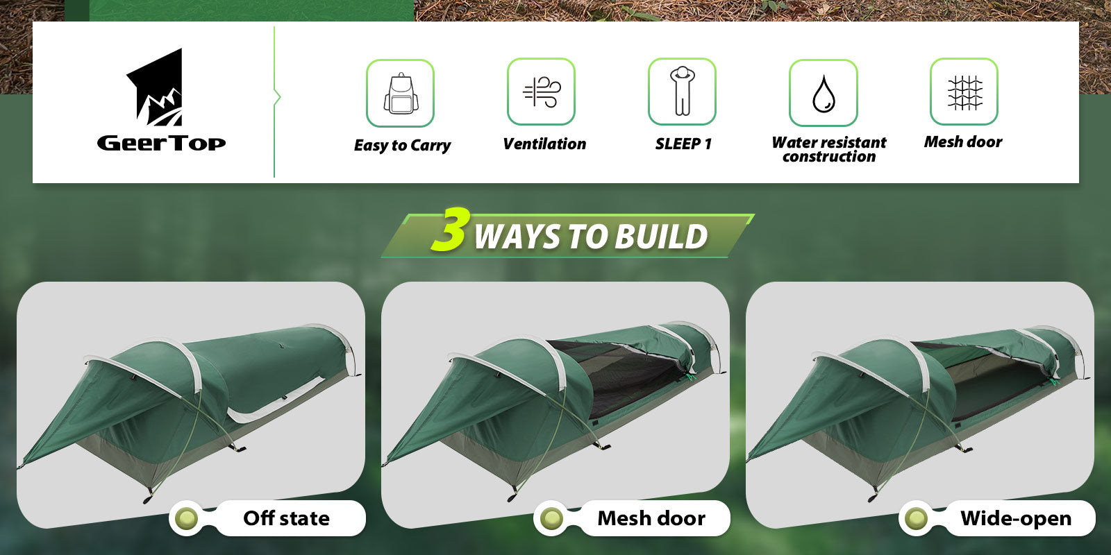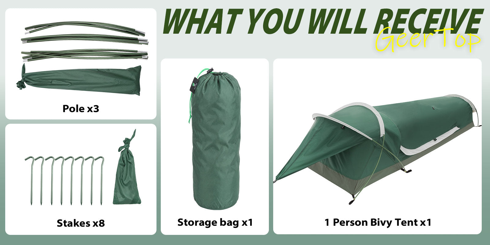 GEERTOP BivyII 1 Person 3 Season Green Ultralight Tent
