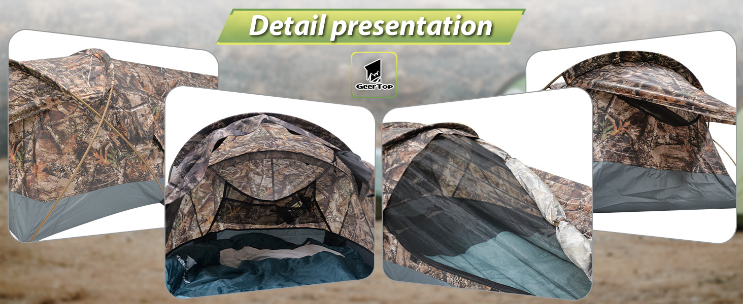 GeerTop BivyII tent is great for situations where a ultralight tent is needed, but strength and stability are still important. Mesh in the top of the tent and in the two ventilation windows allows for greater airflow throughout the entire tent. Internal storage pockets are perfect for holding phones, keys, wallets or any other small items you want close by. Take it with you for a comfortable night!