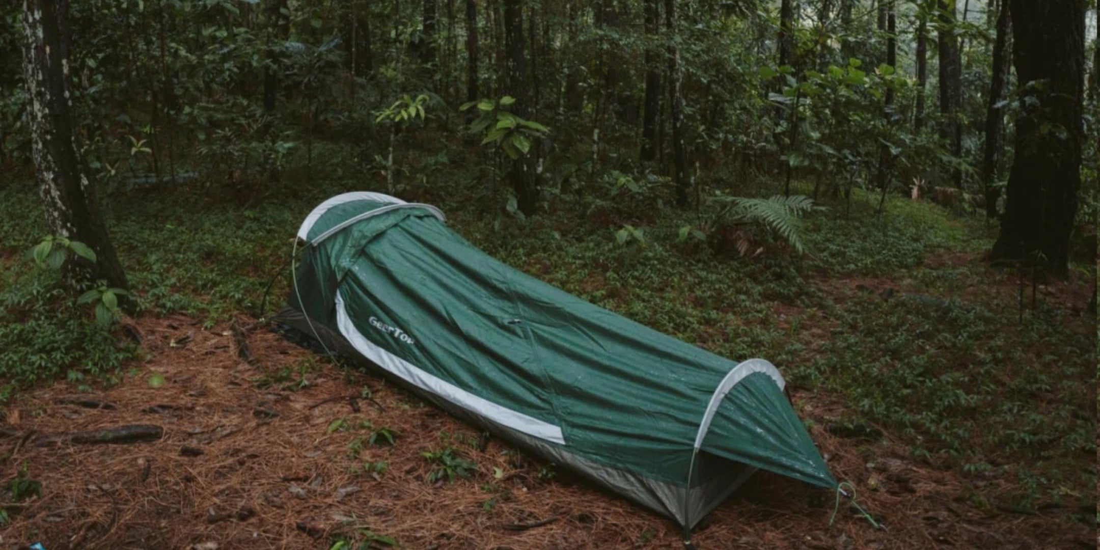 GeerTop BivyII tent has features such as lightweight aluminum poles, durable stitching, full length flysheet, and taped seams for extra waterproofing.