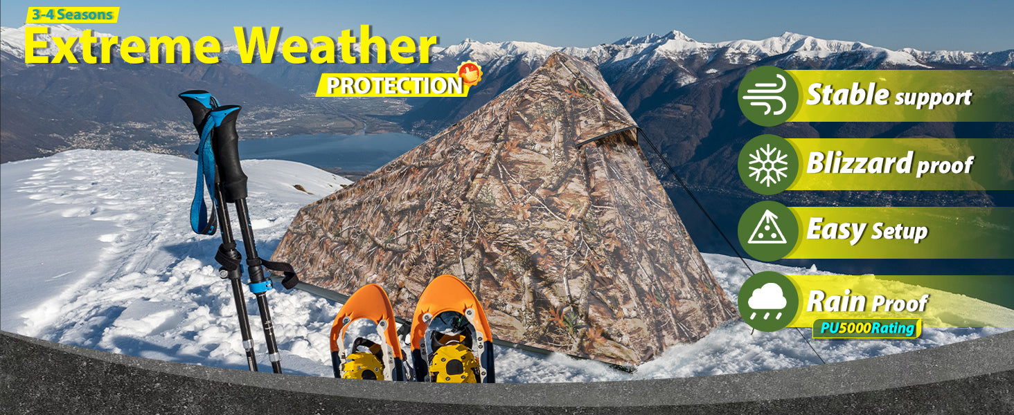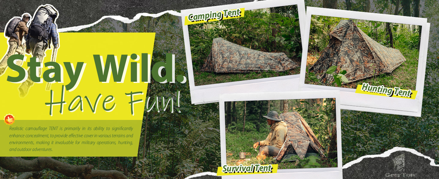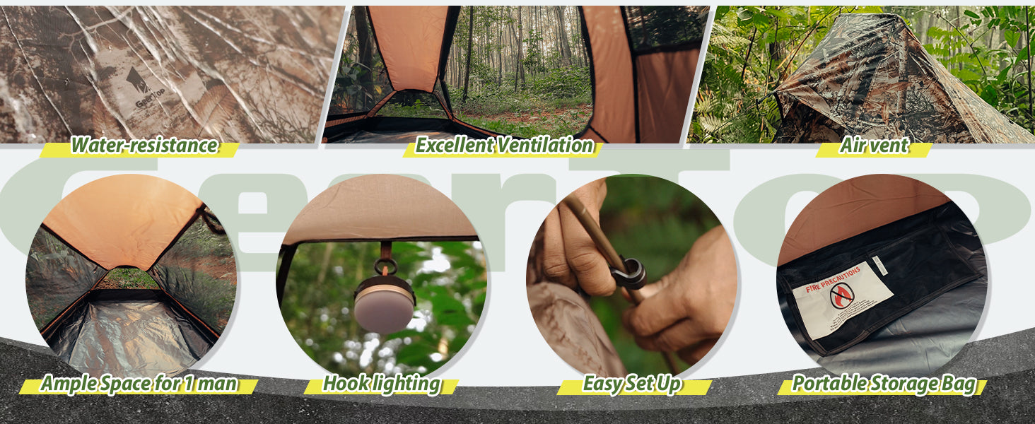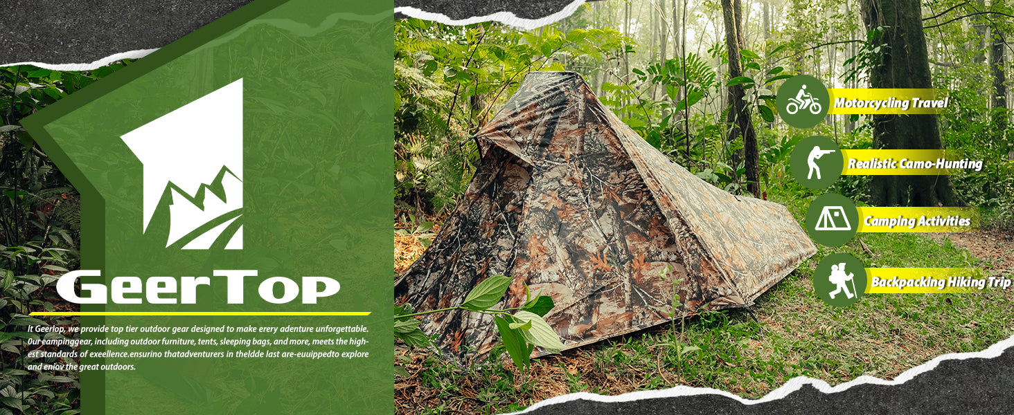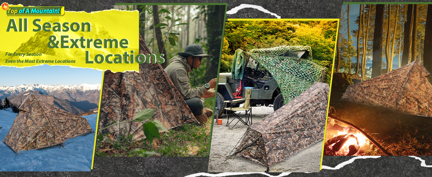 【Realistic Camouflage Tent Design】Blend into nature with realistic leaf-pattern camouflage ; Perfect for hunters, wildlife photographers, or campers prioritizing low-visibility shelters in forests or rocky terrain