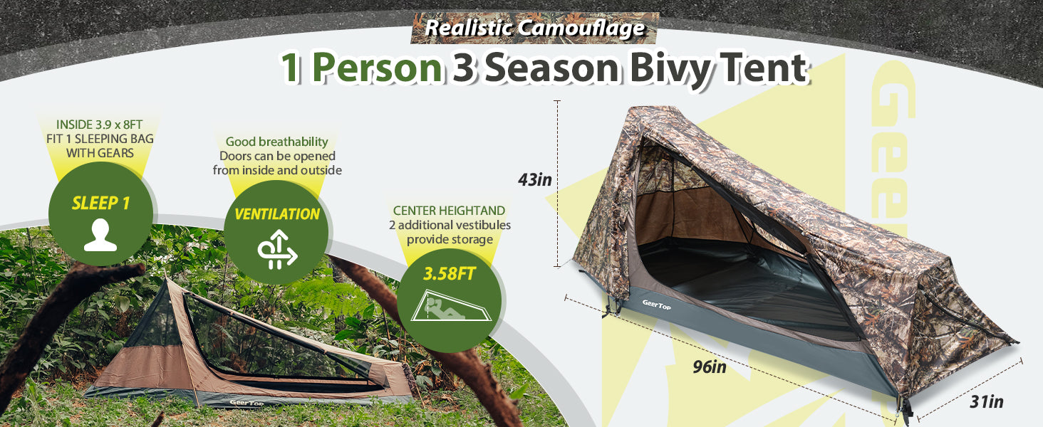 GEERTOP 1 Person 3 Season Ultralight Bivy Waterproof Tent - GeerTop Outdoor
